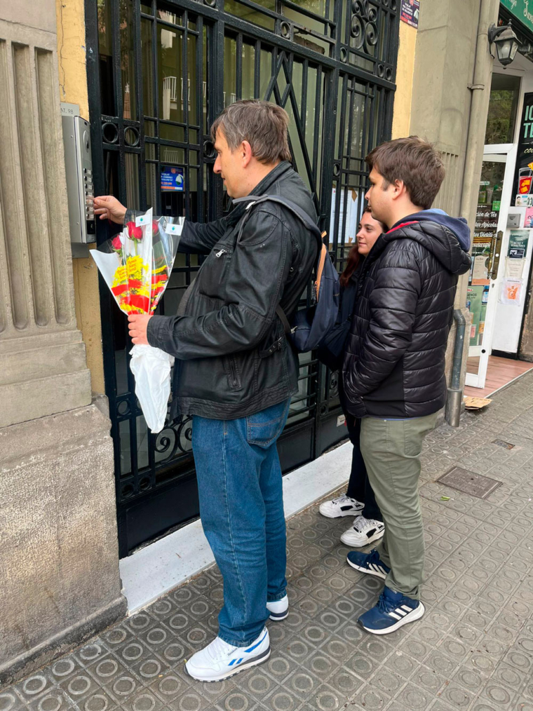 Les persones usuàries del Servei de Rehabilitació Comunitària Dreta Eixample (SRC DE) van escollir aquest dia de Sant Jordi, per organitzar l’activitat Rutes de Salut i poder visitar la ciutat plena de parades de llibres i roses.
