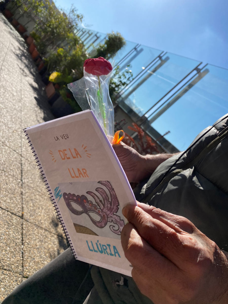 El Servei de Rehabilitació Comunitària Esquerra Eixample (SRC EE) i la Unitat Funcional d’Habitatge (UFH) han desenvolupat dues accions conjuntes amb les persones usuàries dels serveis. Per una banda, han col·laborat amb el voluntariat de l’Associació AVISMON, repartint roses naturals i llibres a domicilis de persones grans en situació de solitud no desitjada que reben, des d’aquesta associació, acompanyament en situacions de xarxa familiar i social insuficient per reduir el risc d’aïllament i exclusió. Per altra banda, varen convocar un recull de relats –Relats en Veu Pròpia– de l’experiència en primera persona en relació a la Salut Mental que posteriorment han estat il·lustrades i seran exposades a la Biblioteca Agustí Centelles.