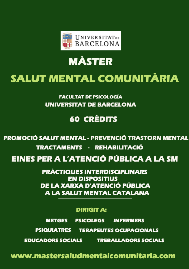 Més informació i inscripcions: www.mastersaludmentalcomunitaria.com