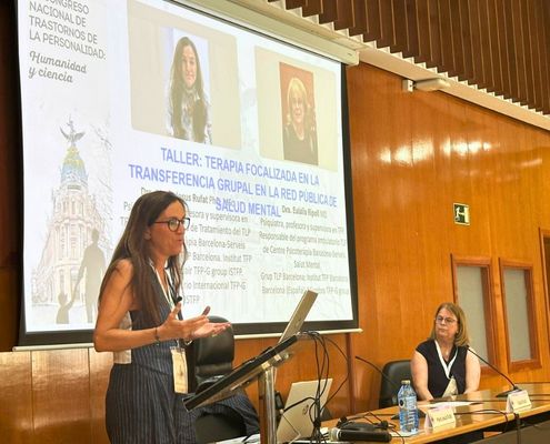 La Dra. Eulàlia Ripoll psiquiatra psicoterapeuta al CSMA Dreta Eixample de la Fundació CPB Serveis Salut Mental, terapeuta especialista en TFP i membre del TFP-Group de la International Society of Transference-Focused Psychotherapy (ISTFP) i membre del Grup-TLP Barcelona, juntament amb la Dra. Maria Jesus Rufat, van mostrar el model de tractament TFP Grupal, treballant material clínic amb les persones assistents, i van presentar els resultats preliminars de la seva eficàcia en canvis i millora en l’estructura de la personalitat patològica i funcionament personal de les persones ateses.